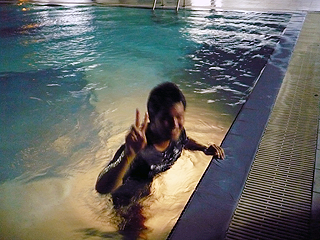 so basically, all the guys got THROWN into the pool, except marques he jumped in himself. i dont think anyone took the video but when i get the pics of everyone getting thrown into the pool ill upload. the party was awesom. had some games in the pool like guys have to carry the girl and race and then carry the girls again on their back and the girls will push the other girls and see whos the last one standing and etc. heres some pics at the party.